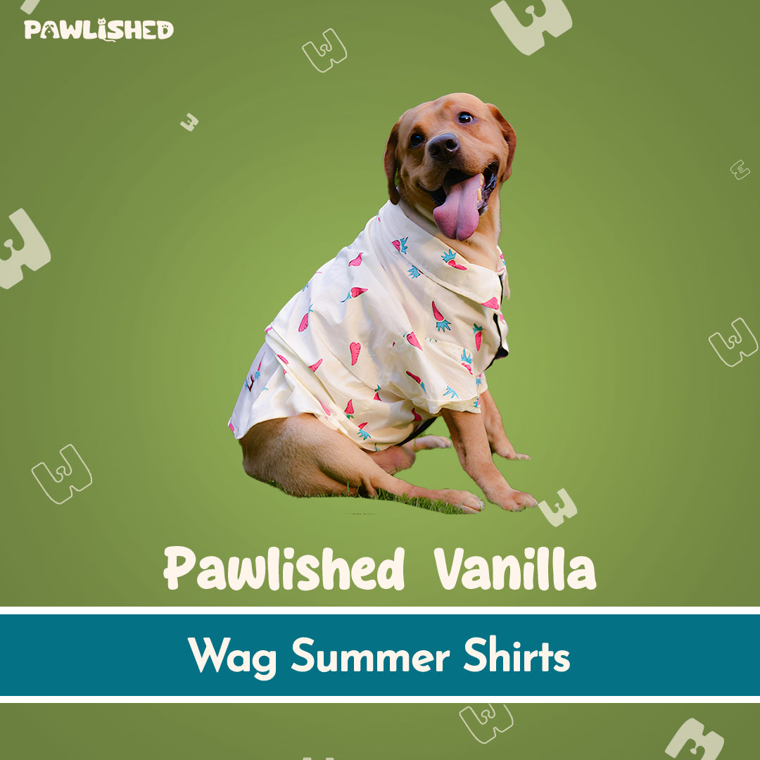 Introducing the Pawlished Luxe Collection - A summer essential for the 'Pawsh' pups Vanilla Wag is thoughtfully designed with lightweight, breathable fabric that feels cool to the touch. Its charming carrot motifs are perfect for pups with playful personalities. Whether it’s a casual walk or a pet party, this shirt keeps your dog looking and feeling fresh.
