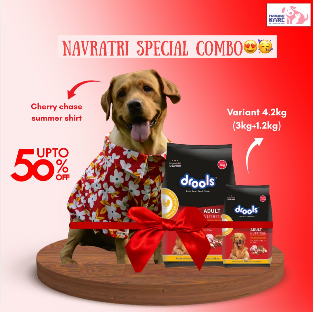 Drools Chicken and Egg Dog Dry Food 4.2 kg + PAWLISHED Cherry Chase Summer Shirt : This combo packs a punch! The Drools dog food provides a balanced, protein-rich diet for your furry friend, while the PAWLISHED Cherry Chase shirt keeps them stylish and cool. Get the best for your pup's health and wardrobe!