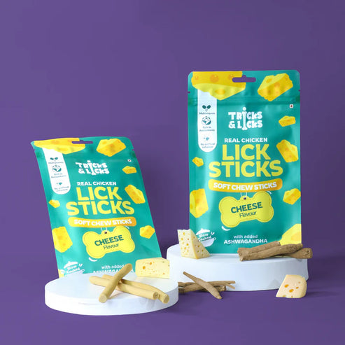 Tricks & Licks Lick Sticks Cheese Soft & Chewy Dog Treats (2U X 70 gms) : Tricks & Licks Sticks have soft, chewy texture makes them an ideal choice for teething puppies, providing a gentle and soothing snack. Whether you’re training a new trick or reinforcing good behavior, these tasty treats keep your pup motivated and eager to learn.